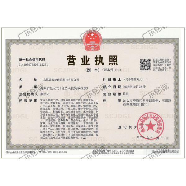 廣東銘誠(chéng)智能建筑科技有限公司成立于2008年,公司注冊(cè)資金為6000萬(wàn)元,集辦公裝修、酒店裝修、家庭裝修、軟裝裝飾、娛樂場(chǎng)所裝修為一體的裝飾公司,率先提出“創(chuàng)造現(xiàn)代人文空間,挑戰(zhàn)業(yè)界高峰”的雄壯口號(hào),并以此為目標(biāo),完成了一大批具有影響力的大型公裝工程:其中包括廣州國(guó)際中醫(yī)藥展貿(mào)中心、奧飛澄海音樂廳、澄海區(qū)國(guó)家稅務(wù)局、澄海興信小額貸款、澄海潮商村鎮(zhèn)銀行、汕頭龍湖賓館、澄海豪庭大酒店、御園國(guó)際飲食城、澄海福晉軒酒家、享樂匯保健有限公司、假日商務(wù)酒店、尚景康園物業(yè)、星輝車模股份有限公司、奧飛動(dòng)漫有限公司、香港國(guó)際玩具、汕頭萬(wàn)基貿(mào)易有限公司、泰興源實(shí)業(yè)有限公司、汕頭皇冠玩具有限公司等;家裝工程包括南澳黃金海岸整幢的精裝房、中信華府、富春華庭、金信鳳凰名城、凱旋花園、中信金城、柏嘉半島、陽(yáng)光海岸、金葉島等高等住宅。 ? 廣東銘誠(chéng)智能建筑科技有限公司經(jīng)過(guò)十余年的建筑裝飾裝修施工領(lǐng)域項(xiàng)目積淀,于2018年2月取得“建筑裝修裝飾工程專業(yè)承包二級(jí)”、“建筑機(jī)電安裝工程專業(yè)承包三級(jí)”、“建筑工程施工總承包三級(jí)”、“施工勞務(wù)不分等級(jí)”、“安全生產(chǎn)許可證”等專業(yè)資質(zhì),并于2021年8月建筑裝修資質(zhì)正式升級(jí)為“建筑裝修裝飾工程專業(yè)承包一級(jí)”。這是對(duì)企業(yè)規(guī)模、工程業(yè)績(jī)、管理水平、誠(chéng)信表現(xiàn)的肯定,是企業(yè)實(shí)力與能力的展現(xiàn)。 ? 公司每一項(xiàng)工程都始終堅(jiān)持“精美設(shè)計(jì)、精心施工、確保合同承諾;勤奮開拓、追求突出、創(chuàng)造時(shí)代精品”的質(zhì)量方針,力爭(zhēng)做一項(xiàng)工程,樹一座豐碑。 ? ?銘誠(chéng)擁有一支由專業(yè)的營(yíng)銷精英和客戶顧問(wèn)組成的營(yíng)銷隊(duì)伍,勤奮、敬業(yè)的每一位銘誠(chéng)員工將本著“贏在別人休息時(shí)”的專業(yè)精神,為客戶提供全程營(yíng)銷及售后服務(wù),確??蛻舻暮戏ɡ?,提供體貼周到的服務(wù),做到讓顧客滿意。 ? 銘誠(chéng)擁有一批資老牌室內(nèi)環(huán)境設(shè)計(jì)師,以“現(xiàn)代人文空間”為設(shè)計(jì)理念,為客戶提供人性化、差異化、智能化的室內(nèi)環(huán)境設(shè)計(jì)服務(wù),準(zhǔn)確的將人性化特點(diǎn)與室內(nèi)環(huán)境相融合,達(dá)到了“現(xiàn)代人文空間”的和諧統(tǒng)一。 ? ? ? ?自主創(chuàng)新、視社會(huì)責(zé)任為己任的精神使我們?cè)诎l(fā)展的道路上屢獲殊榮:不斷提升的銘誠(chéng)品牌知名度和美譽(yù)度,靠的是優(yōu)質(zhì)的產(chǎn)品,靠的是不斷提升的營(yíng)業(yè)績(jī),靠的是國(guó)內(nèi)的核心技術(shù)和誠(chéng)信的服務(wù)。相信通過(guò)銘誠(chéng)人的努力,銘誠(chéng)將會(huì)不斷以新的姿態(tài)為提升廣大消費(fèi)者的生活質(zhì)量做好服務(wù),為中國(guó)裝飾行業(yè)設(shè)計(jì)創(chuàng)新做出突出貢獻(xiàn)。 ? ? “忘掉競(jìng)爭(zhēng)、共